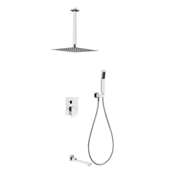 单把手冷热三功能主体套装(单功能顶喷+不锈钢单功能手持花洒+出水咀)