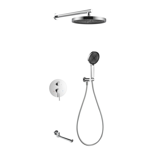 单把手冷热三功能主体套装(单功能顶喷+多功能手持花洒+出水咀)