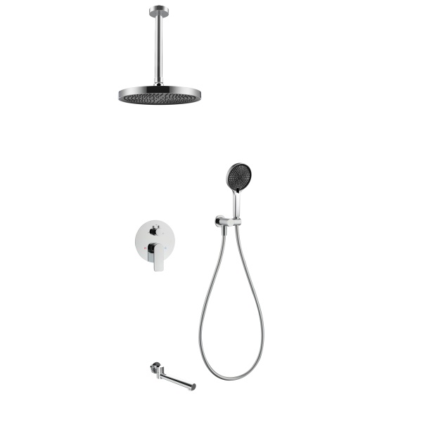 单把手冷热三功能主体套装(单功能顶喷+多功能手持花洒+出水咀)