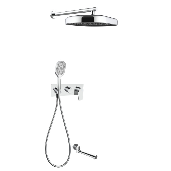 单把手冷热三功能主体套装(单功能顶喷+多功能手持花洒+出水咀)